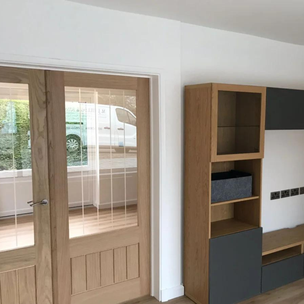 Complimentary Flooring: To accentuate the shaker units and establish a coherent aesthetic throughout the living space, the design incorporates flooring that complements the units’ style and colour. This harmonious combination elevates the overall ambiance of the space.